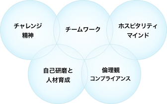 私たちの使命は、「確かなサービスで、お客様のさらなる企業価値向上に貢献する」こと。そのためにはすべての社員が同じ方向を向いて、それぞれの能力と個性を発揮することが必要であり、その指針となるのが5つの価値観です。