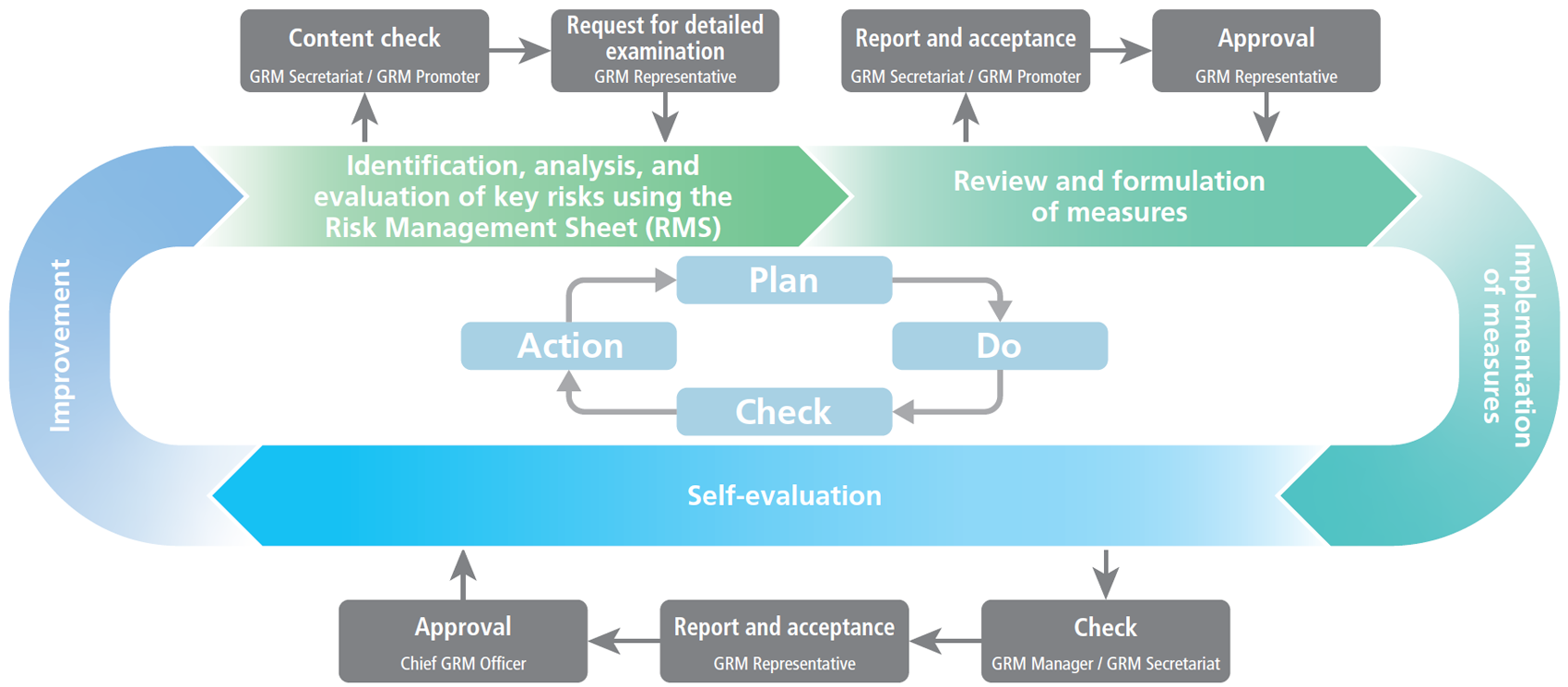 In the fiscal year ended March 31, 2025, as in the previous fiscal year, the four major business operating companies on the first line of defense and relevant members of the second line of defense held discussions, with the second line reviewing risk items, mainly group key risks, and supporting risk reduction activities. In order to apply consistent risk assessment standards throughout the Group, we established risk assessment criteria in the fiscal year ended March 31, 2024. Using these criteria, we are further enhancing risk management through such efforts as discussing the appropriateness of the first line of defense’s risk assessment results, the adequacy of specific measures, and details of related support.