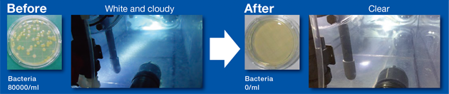 洗浄装置水洗タンク内で発生するバクテリアを短時間で除去。