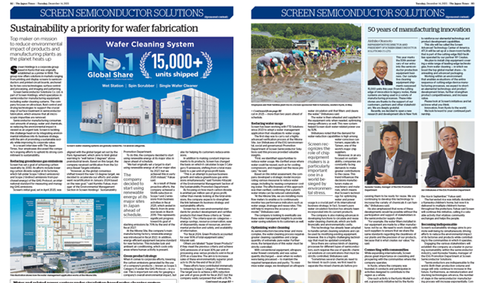 SCREEN SPE featured in the “SEMICON Japan 2024 Special Issue” of The Japan Times